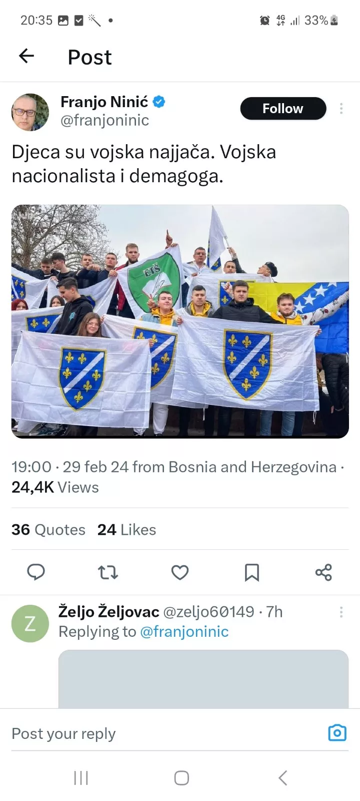 Ovaj put na meti su se našla djeca. Tako je Franji Šarčeviću profesoru na sarajevskom univerzitetu zasmetala slika dječaka sa beretkom i ljiljanima. Šarčević je fotografiju ocijenio kao bolesnu, a podršku u tome dobio je od bivšeg generalnog sekretara SNSD-a Rajka Vasića koji je prije par godina prijetio Bošnjacima novim genocidom.
