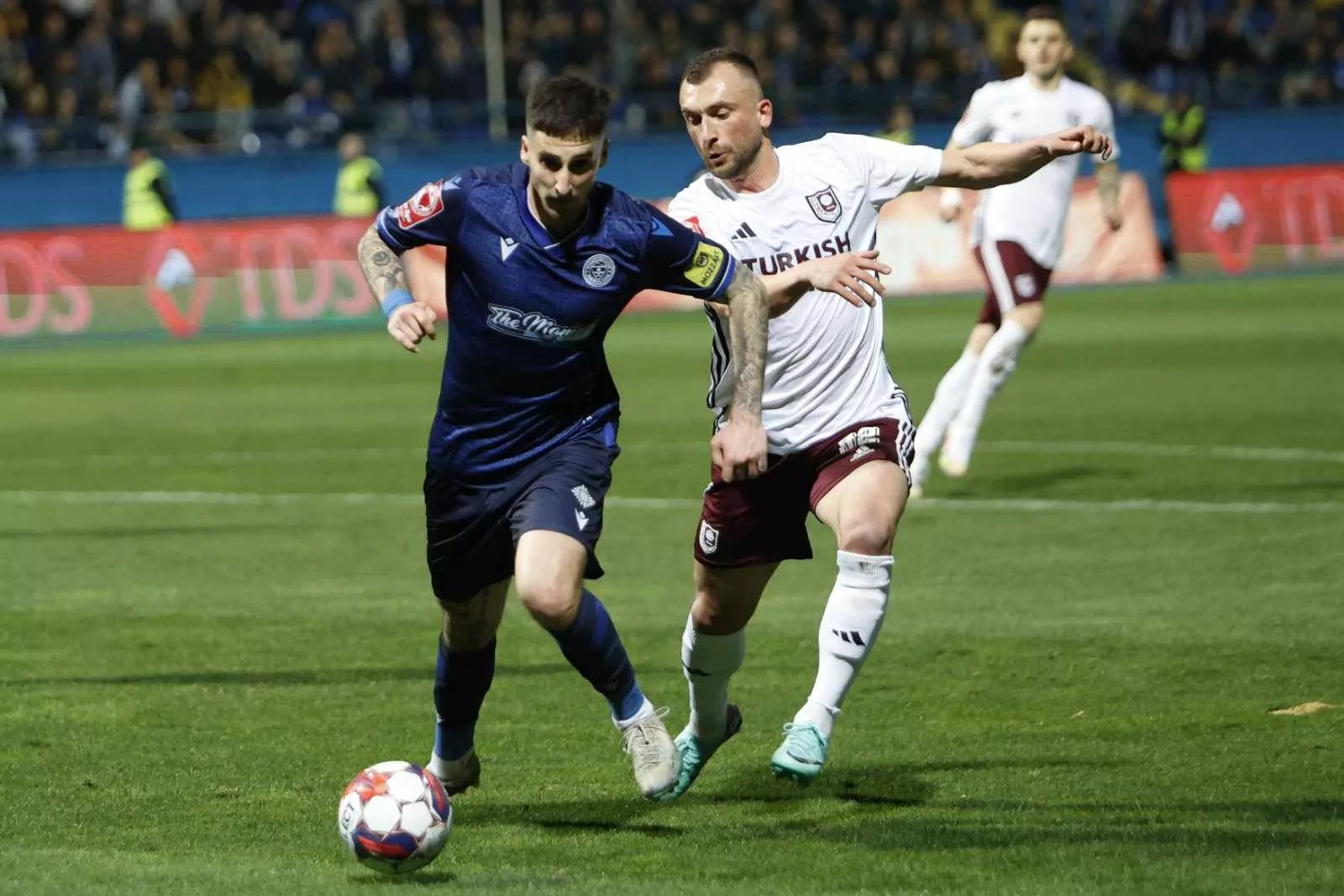 Nekoliko minuta poslije Peneranda griješi, ali domaći ne koriste dobru priliku. Nakon toga se igralo između dva šesnaesterca. U 30. minuti nakon prekida koji je izveo Radović u skoku su se sudarili Cocalić i Muftić. Stoper Plavih je loptu izbacio u korner.