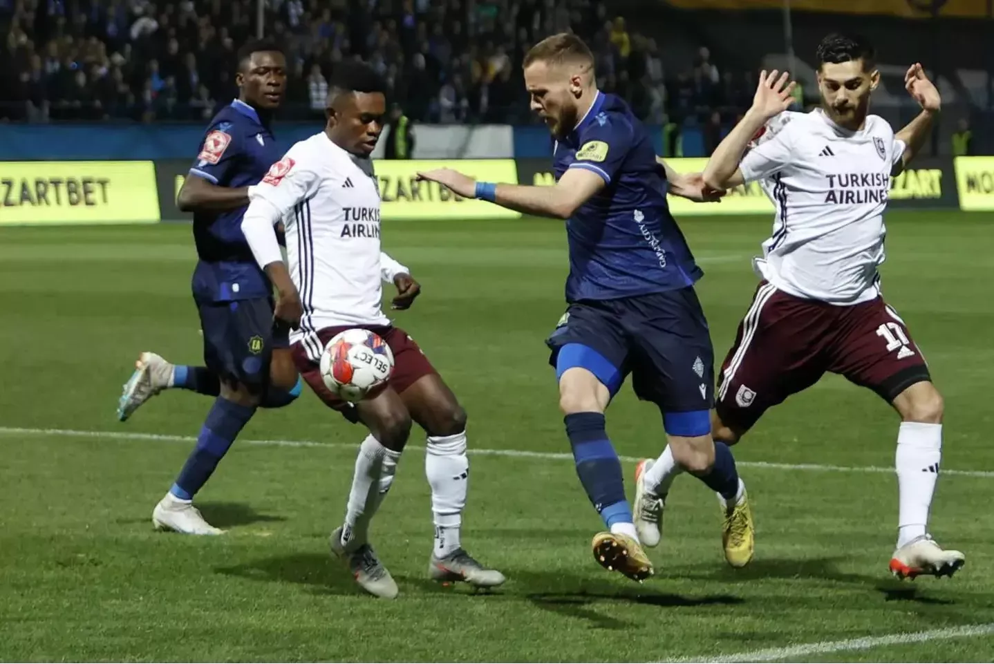 Ipak, u 57. minuti Kyeremeh je pogriješio po treći put u nekoliko minuta, a u nastavku akcije Galić je pogodio za 2:0. Bezidejna igra Bordo tima i udvostručeno vodstvo Plavih. Tim sa Koševa izgledao je potpuno bez ambicija i sistema, što su domaći znalački koristili.