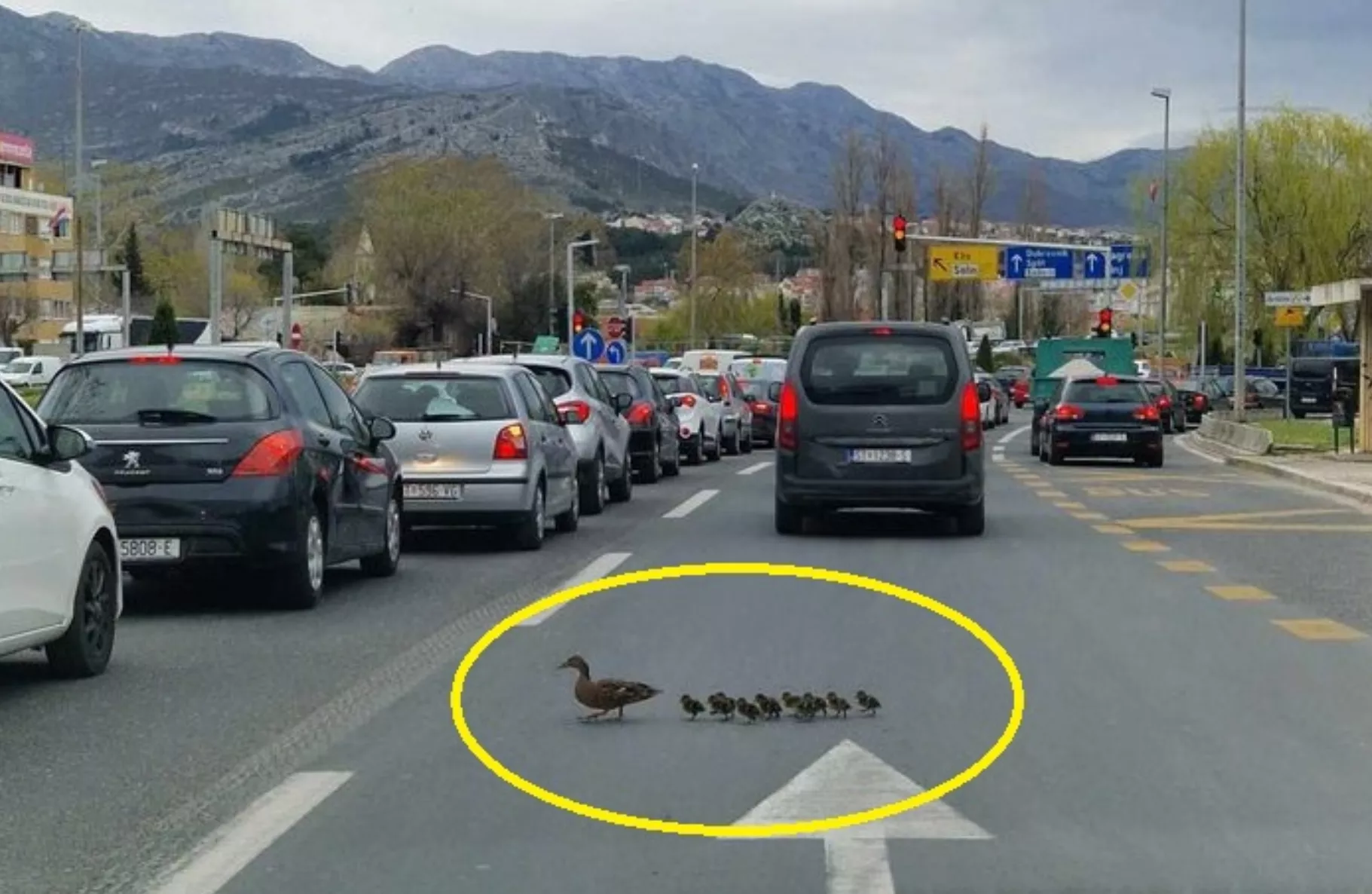 Mama patka nije bila ni svjesna opasnosti koja njoj i mališanima prijeti od automobila. Ili možda i jeste, ali drugog izbora nije imala.