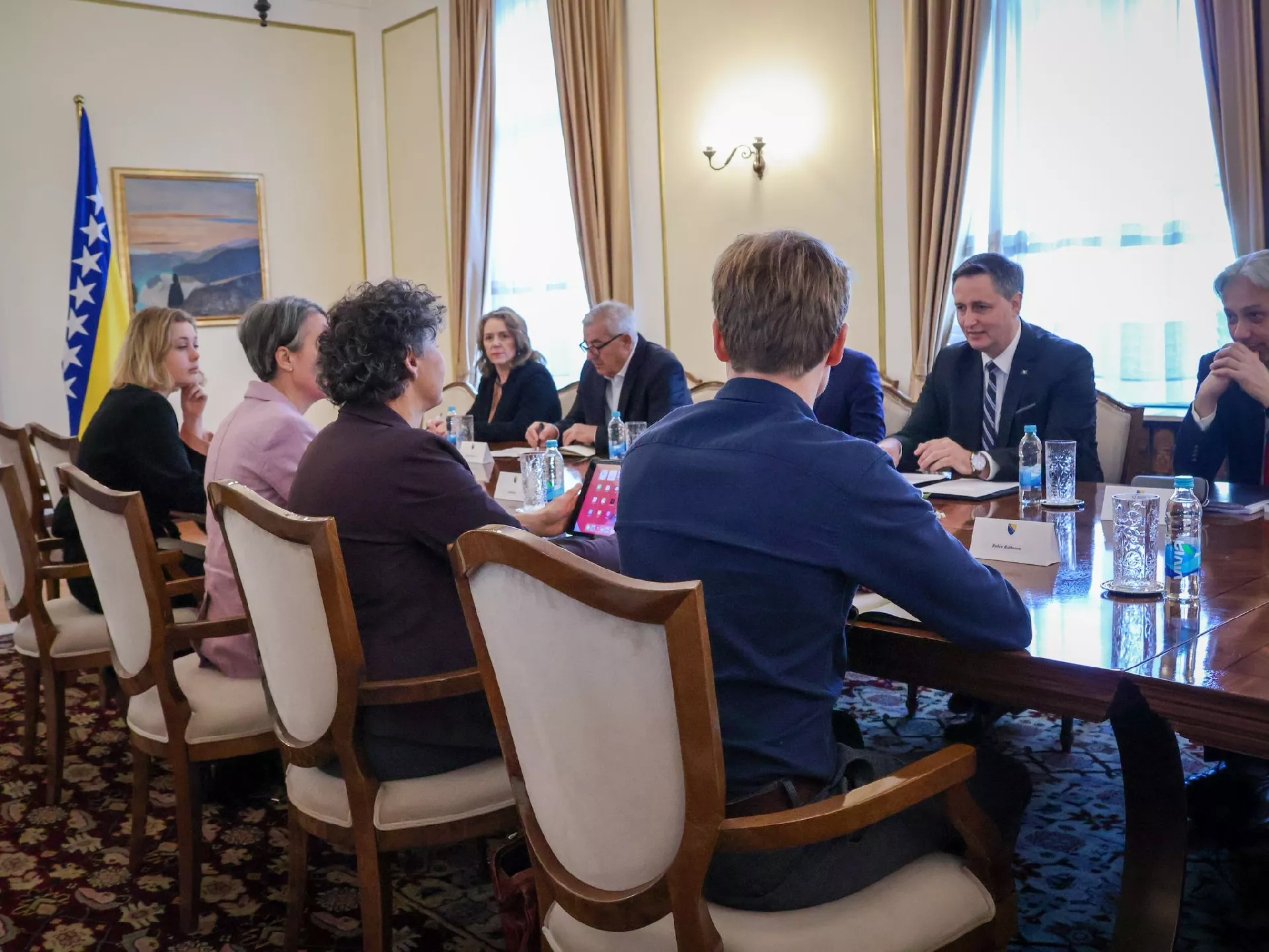 Nju su primili predsjedavajući Denis Bećirović, a u ime članova Predsjedništva BiH Željke Cvijanović i Željka Komšića sastanku su prisustvovali savjetnici Marko Milisav i Slaven Kovačević.