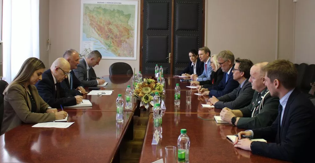 Ministar Helez uputio je riječi dobrodošlice gostujućoj delegaciji, u kojoj su, između ostalih, bili zamjenik direktora Odjela za jugoistočnu Evropu Johana Løøvea, zamjenik šefa misije Stefan Sandstad i nerezidentni vojni ataše Kraljevine Norveške za BiH brigadir Dag-Magne Lunde.