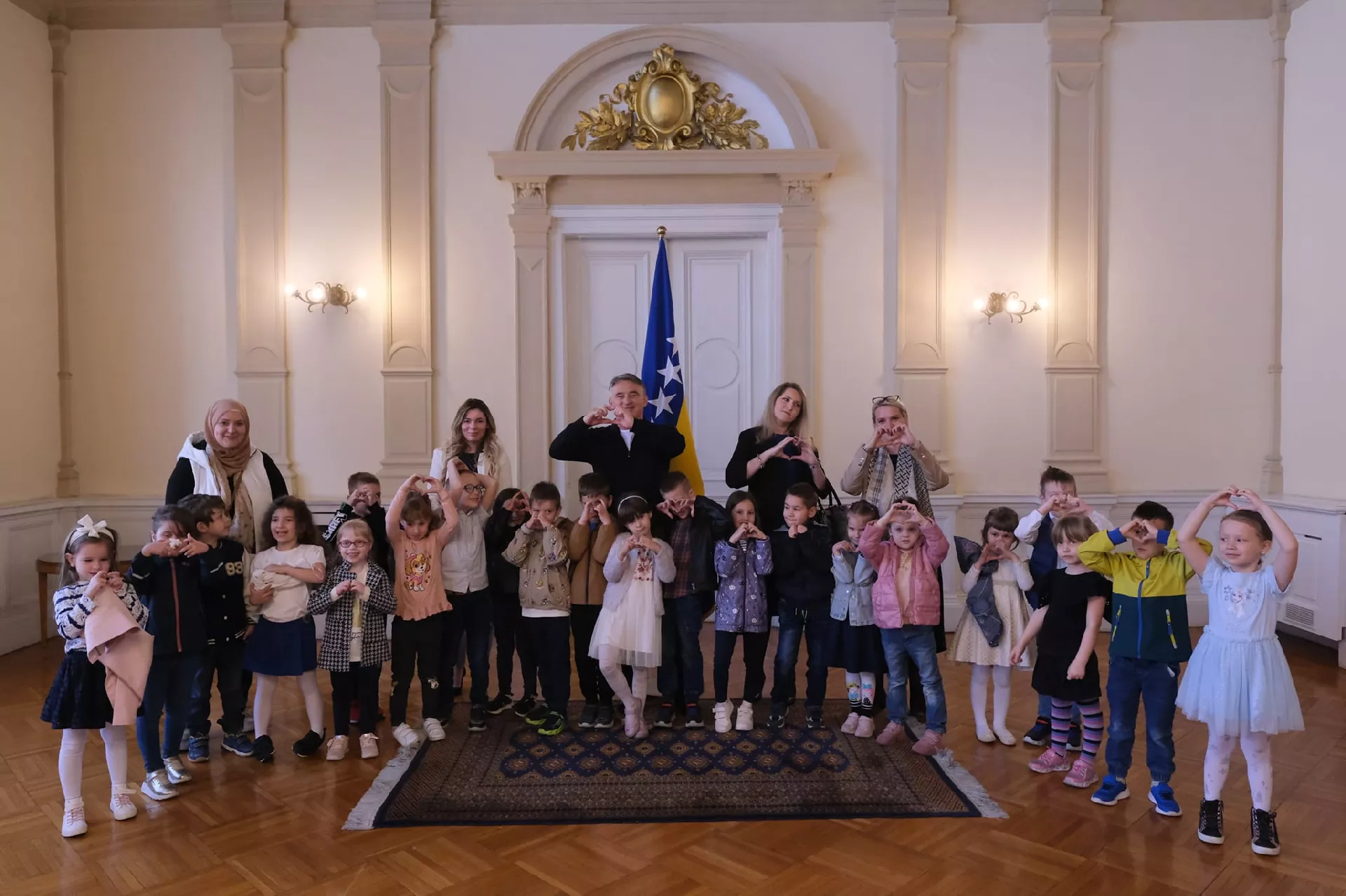Kako bi zahvalili na gostoprimstvu i mogućnosti da posjete ovu značajnu instituciju Bosne i Hercegovine, djeca su zajedno s odgajateljima pripremila posebnu pjesmu koju su izveli članu Predsjedništva Komšiću te su poklonila i sliku koju su sama nacrtala, simbolično prikazujući saradnju i prijateljstvo. Ovaj gest je dodatno ojačao veze između najmlađih i državnih institucija, ističući važnost obrazovanja i kulture u izgradnji bolje budućnosti.
