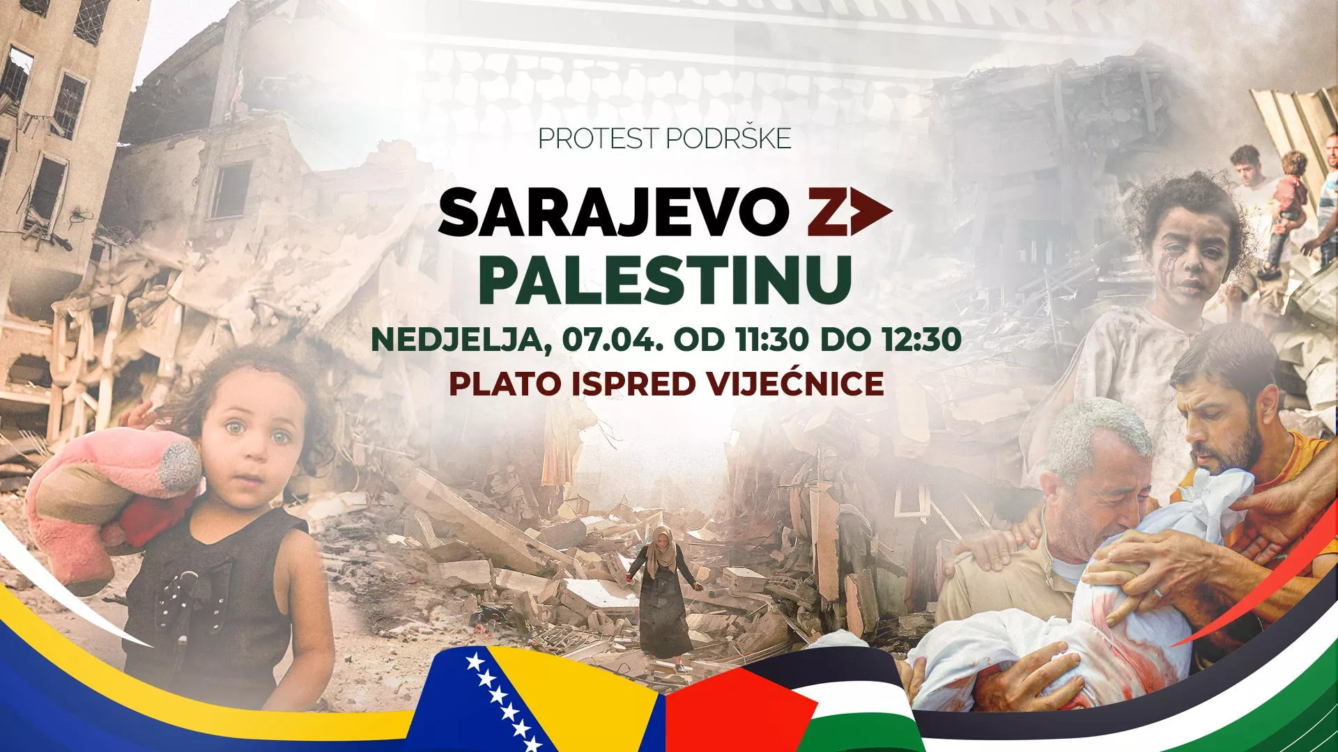 (Patria) - Na platou preko puta Vijećnice u Sarajevu u nedjelju, 7. aprila bit će održan mirni protest građana u znak podrške Palestini i Gazi.