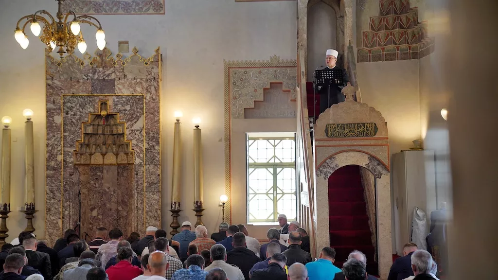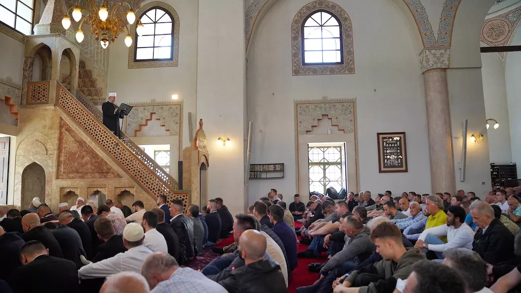 U Gazi Husrev-begovoj džamiji u Sarajevu hutbu je kazivao hafiz dr. Mensur-ef. Malkić, direktor Uprave za vjerske poslove.