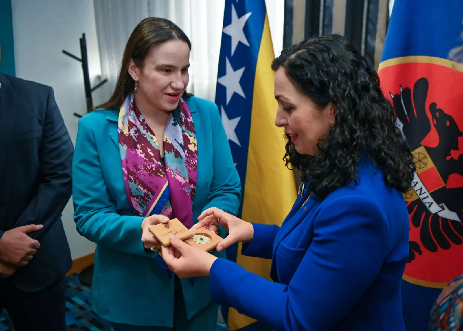 „Ovim činom Republika Kosovo iskazala je posvećenost istini i pravdi i odlučnost da bude aktivni sudionik svjetskog mirovnog pokreta“, istakla je Karić te predsjednici Osmani Sadriu poklonila Cvijet Srebrenice.