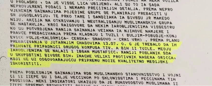 Novinska agencija Patria objavila je ranije dokument sačinjen od strane Dragana Kijaca, rukovodioca MUP-a Rs u Bijeljini, a upućen zamjeniku ministra unutrašnjih poslova Rs-a od 13. jula 1995. godine.