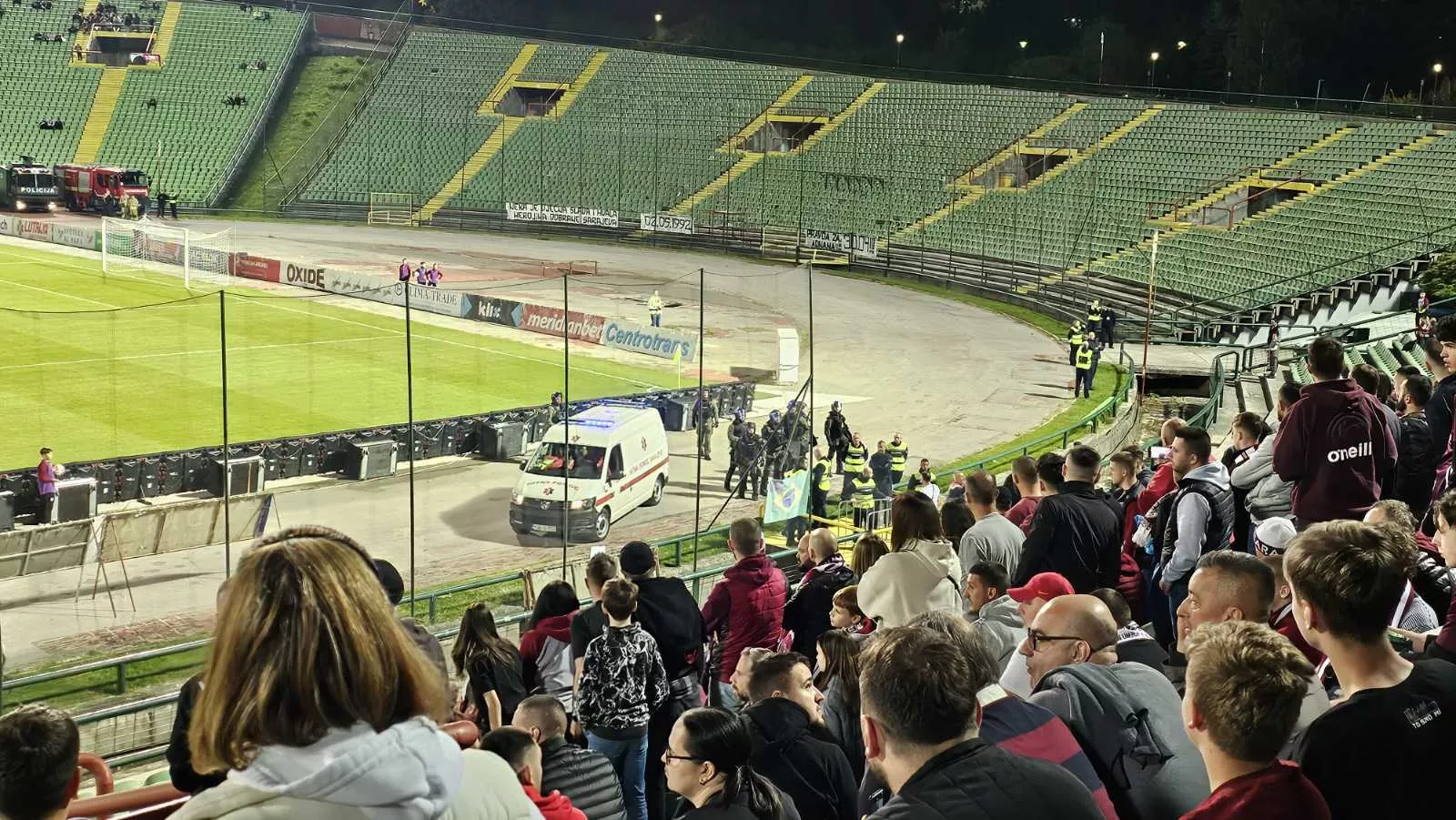 Oko 21:05 sati, posjetioci Sjeverne tribine istu napuštaju, te pokušavaju ući na ulaze koji su namijenjeni za Zapadnu i Istočnu tribinu, u čemu su onemogućeni od strane redara koje je angažovalo Udruženje Fudbalski klub Sarajevo.