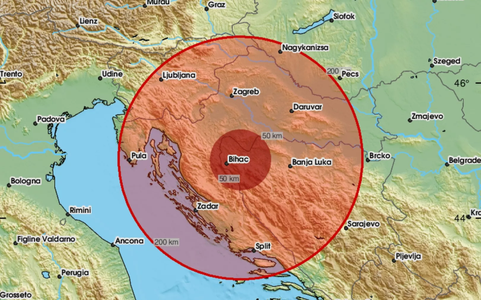 (Patria) - Zemljotres magnitude 3,5 stepeni Richterove skale pogodio je u večernjim satima Hrvatsku, u blizini granice s Bosnom i Hercegovinom.
