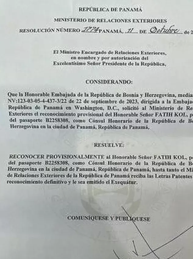Počasni bh. konzul u decembru 2023. godine predao je akreditive vlastima u Panami.