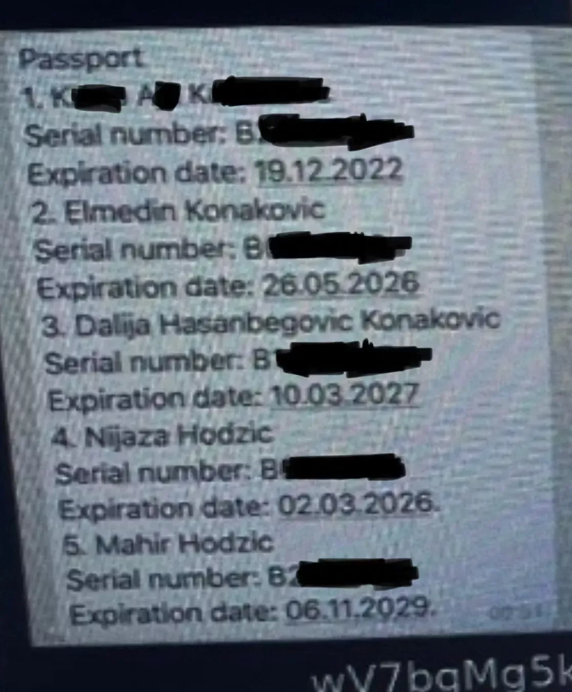 brojevi pasoša porodice Konaković pronađeni u Sky telefonu Dženisa Kadrića (Foto: Istraga.ba)