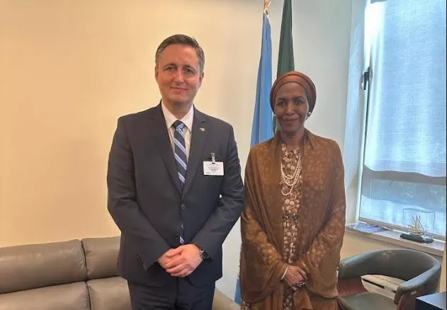 (Patria) - Predsjedavajući Predsjedništva BiH Denis Bećirović razgovarao je s ambasadoricom Fatimom Kyari Mohammed, šeficom misije Afričke unije u Ujedinjenim nacijama (UN) u New Yorku. Sastanku je prisustvovao i ambasador BiH u UN-u Zlatko Lagumdžija. Tokom razgovora naglašeno je da je Afrička unija najveća kontinentalna organizacija na svijetu, koja okuplja 55 suverenih država članica UN-a, od kojih mnoge razvijaju