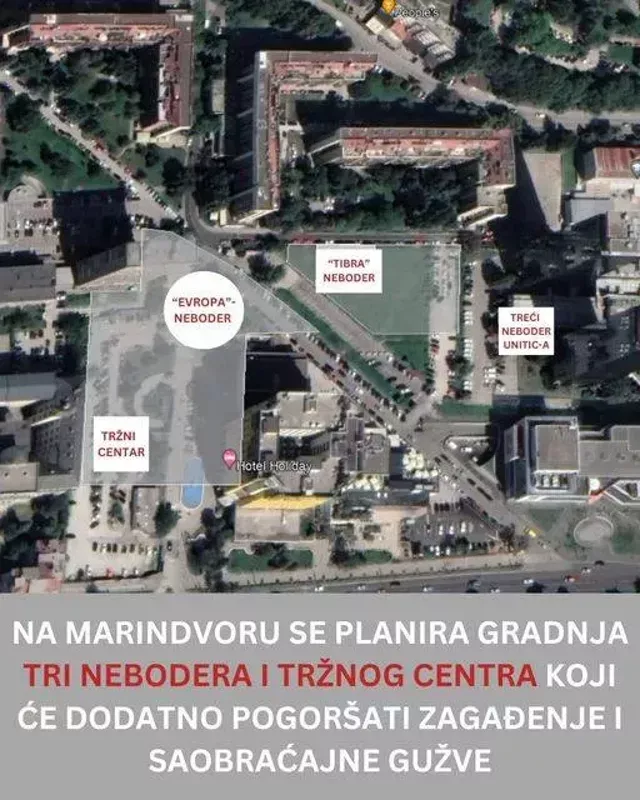 Prema planu gradnje umjesto postojećeg drveća dobit ćemo betonske žardinjere. Tamo gdje su bili ili bi trebali biti travnati parkovi postavit će betonske ploče iz kojih ljeti bije nesnosna vrelina. Umjesto igrališta i klupa, dobit ćemo skučene prolaze između zgrada. Marijin Dvor nestaje pod tornjevima! Za koga i za šta? Hoćemo naselja za dobar i pristojan život običnih ljudi", poručuju građani okupljeni oko inicijative "Rad za Grad".