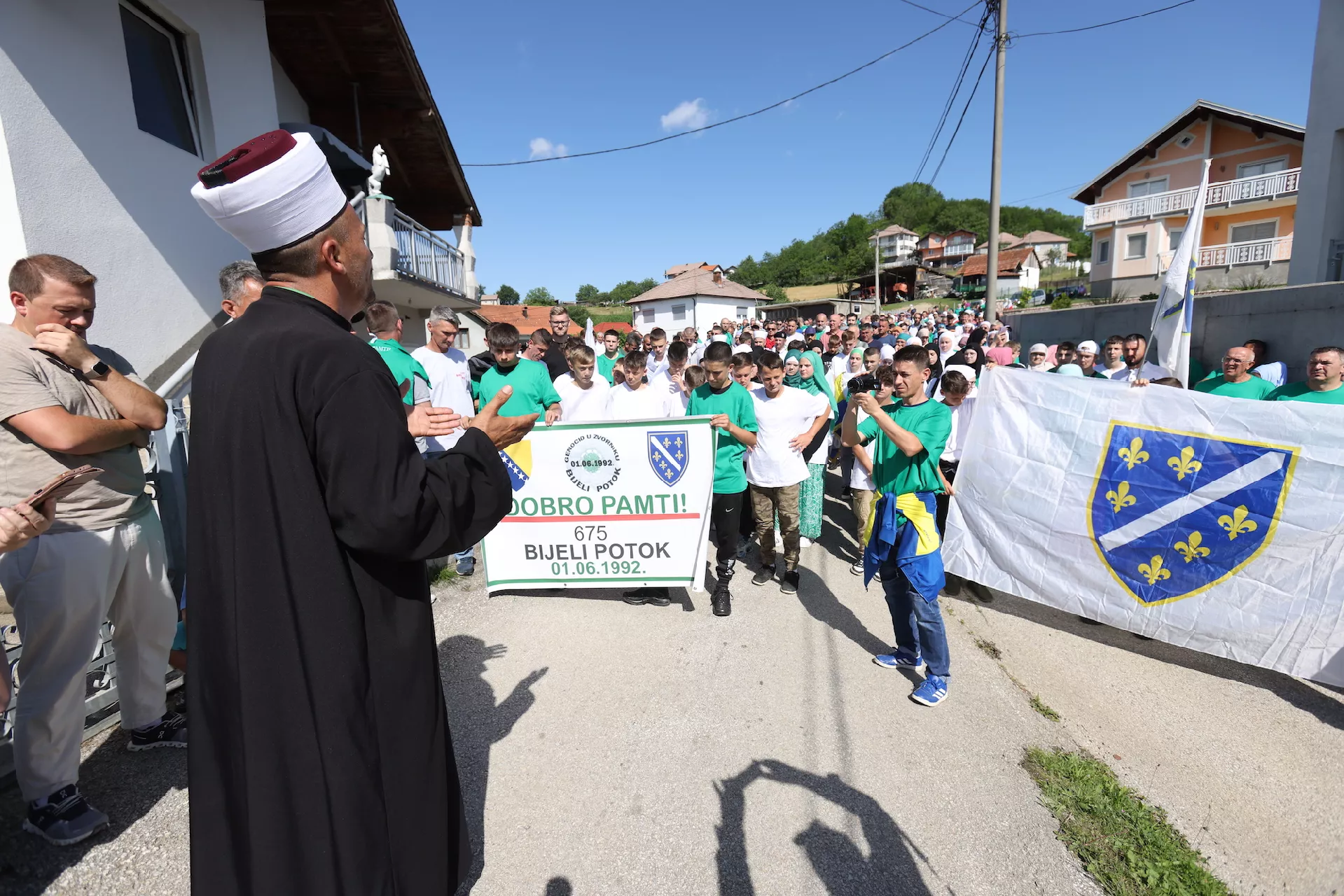 Tradicionalnom maršu prisustvovalo je nekoliko stotina muškaraca, žena, mladih i djece, koji su se tokom pješačenja prisjećali na događaje od prije 32 godine.