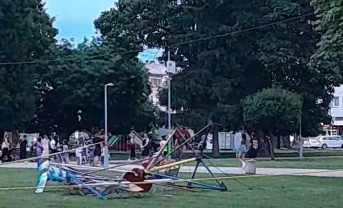(Patria) - U parku Narodnih heroja u Doboju u večernjim satima prevrnuo se ringišpil.