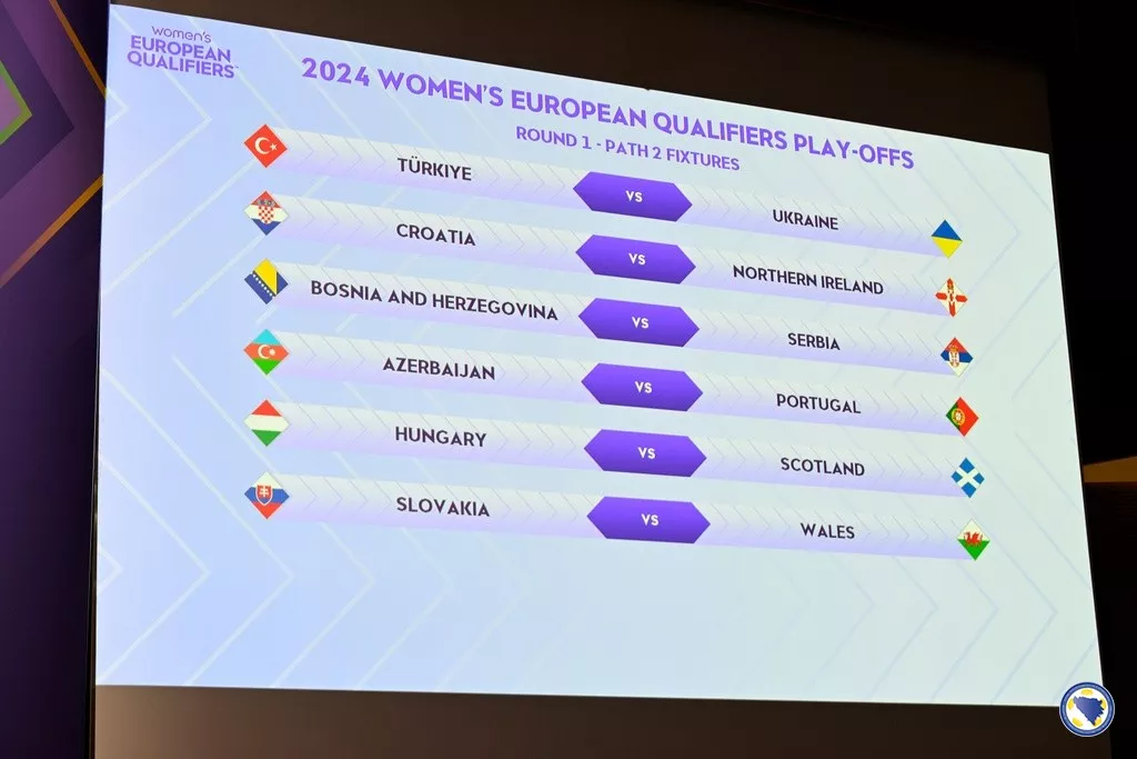 (Patria) - U sjedištu UEFA-e u švicarskom Nyonu danas je održan žrijeb play offa kvalifikacija za Evropsko prvenstvo 2025 za žene.