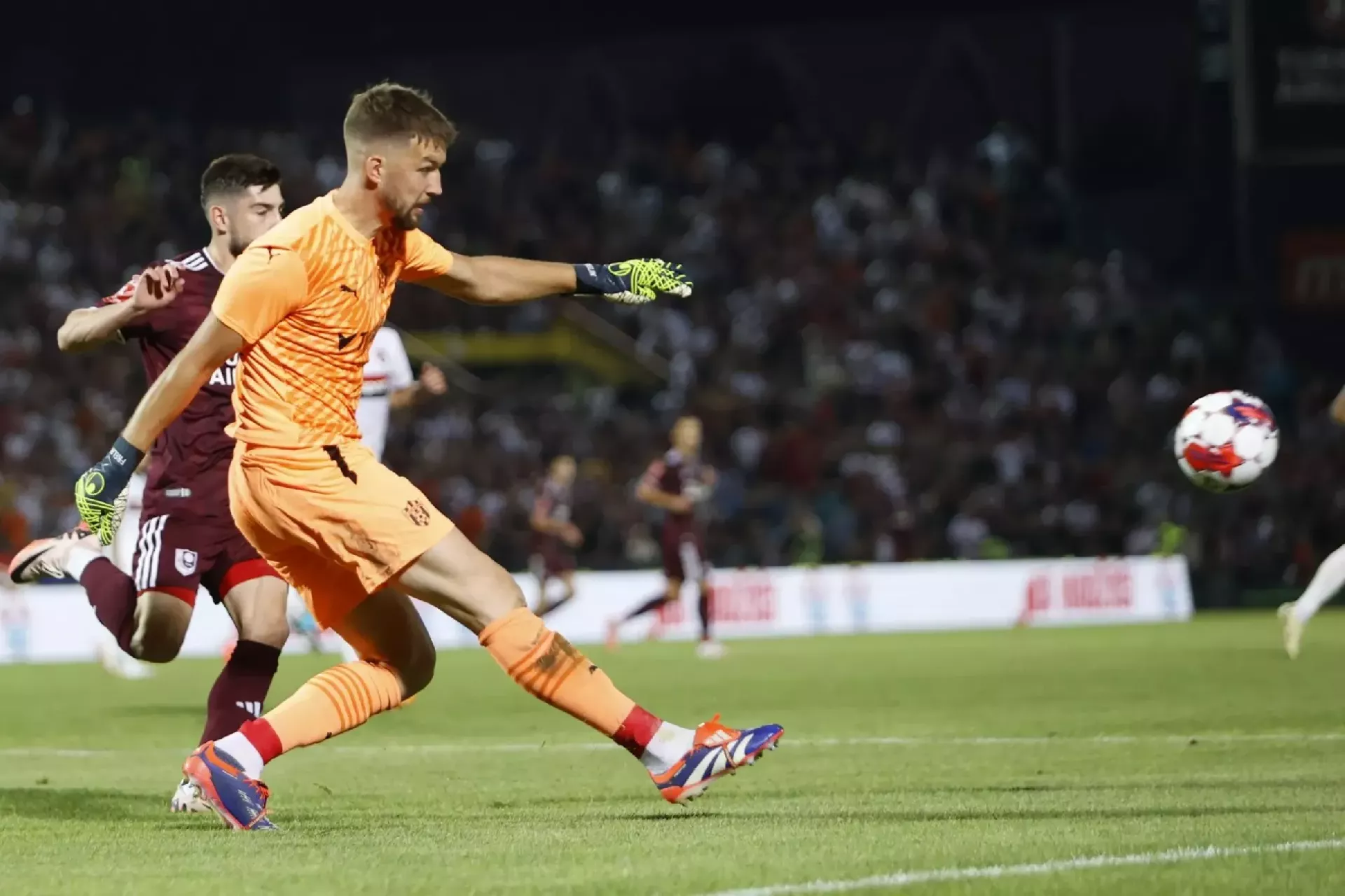A onda još jedna stopostotna prilika za Sarajevo. Ponovo je pogriješila zadnja linija Spartaka, Kyeremeh je glavom asistirao Guliashviliju, koji je sa 7-8 metara bio oči u oči sa Frelihom, ali je golman Spartaka odbranio njegov udarac.