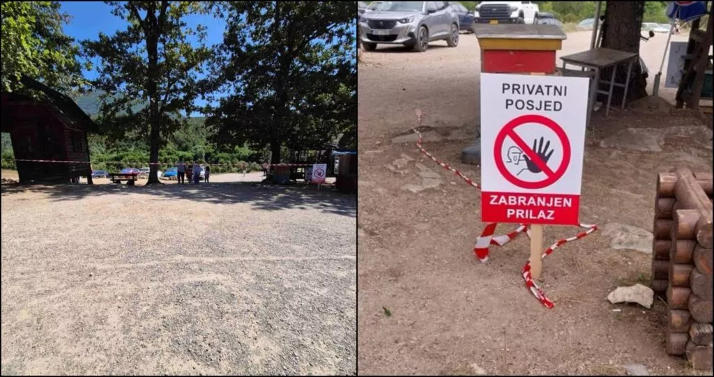 Kako je N1 ispričao Almir Mešanović, mještanin koji ima štand na Štrbačkom buku, a s kojim su i ranije razgovarali, jutros su ponovo osvanule table sa natpisima da je riječ o privatnom posjedu, a cijeli teren je bio ograđen trakama.