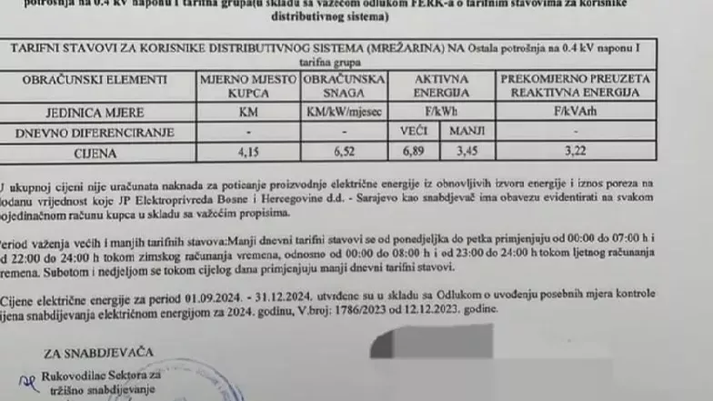 „Cijena više tarife preračunato u MWh iznosi cca 150 EUR-a što je nerazuman iznos gledajući cijene na berzama i uspoređujući cijene za privredu iz okruženja.
