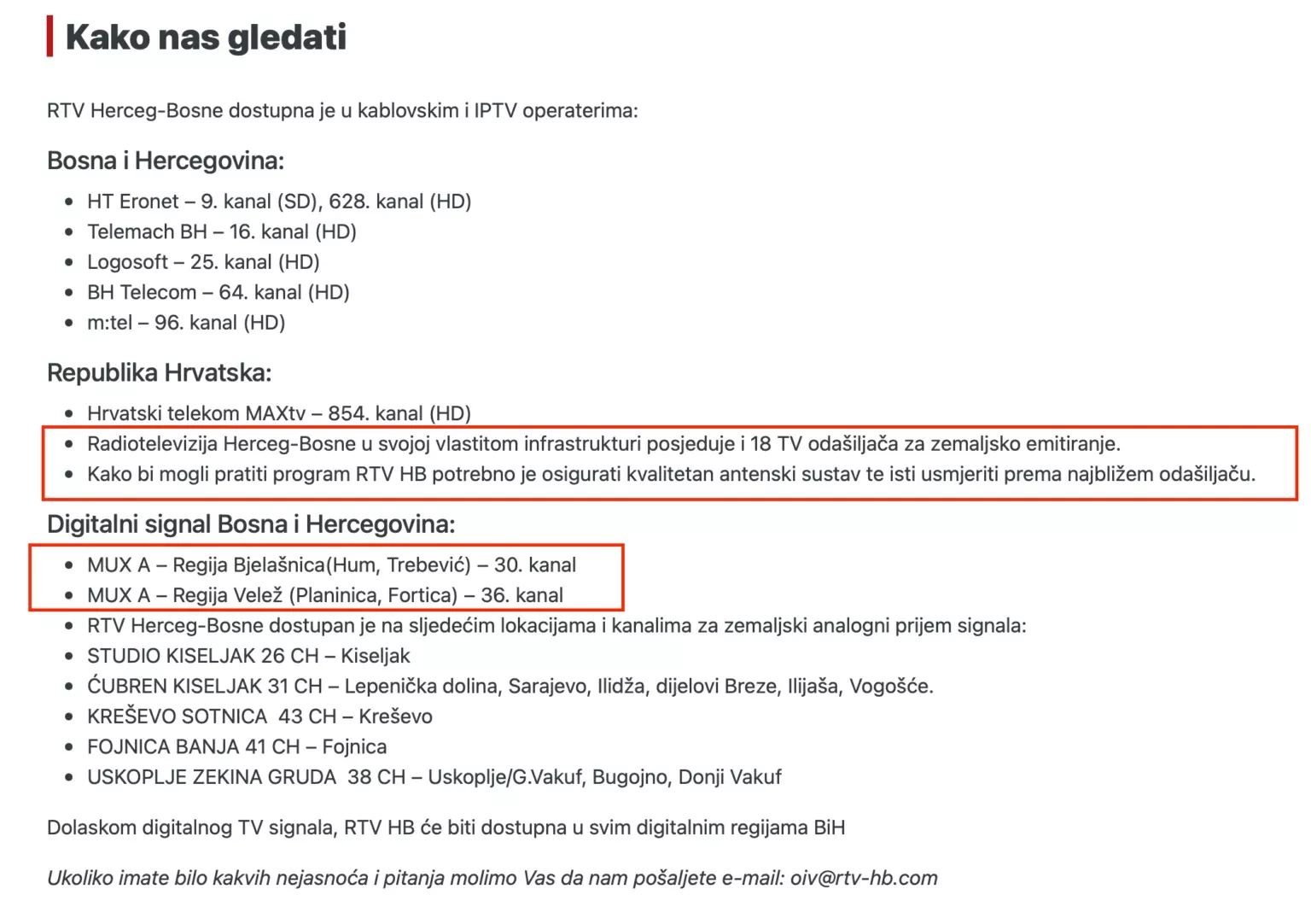 “Radiotelevizija Herceg-Bosne (RTV HB) bosanskohercegovački je radiotelevizijski medij na hrvatskom jeziku u vlasništvu 22 općine, grada i županije s većinskim hrvatskim stanovništvom. Jedini smo javni medij na hrvatskom jeziku koji svojim radom pokušava nadoknaditi manjak medijskog prostora i nepostojanje kanala na hrvatskom jeziku na javnim RTV servisima i sustavu”, navedeno je na oficijelnom youtube kanalu RTV Herceg-Bosne.