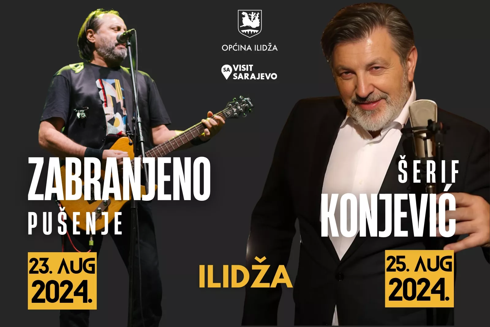 Ulaz na koncerte Zabranjenog pušenja i Šerifa Konjevića koje Općina Ilidža organizuje u saradnji s Turističkom zajednicom Kantona Sarajevo je besplatan, a oba koncerta će početi u 21 sat.