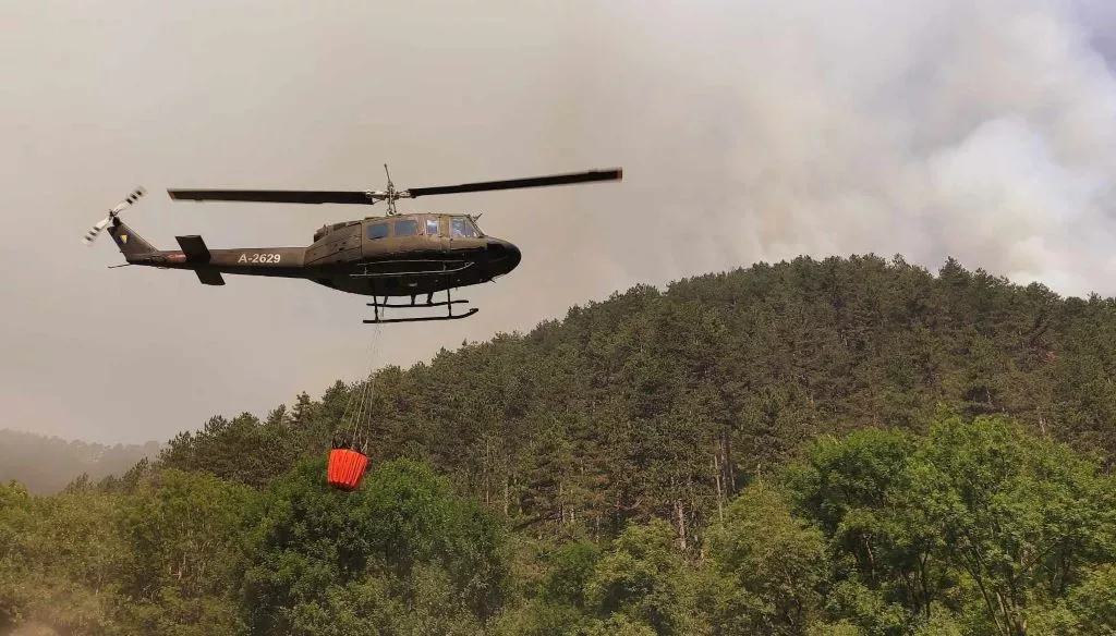 (Patria) - Odmah po prijemu zahtjeva i odobrenju Predsjedništva Bosne i Hercegovine, helikopter Oružanih snaga BiH tipa UH-1H-II Huey 2 u nedjelju poslijepodne, 25. avgusta 2024, godine angažiran je na gašenju požara kod Zavidovića.