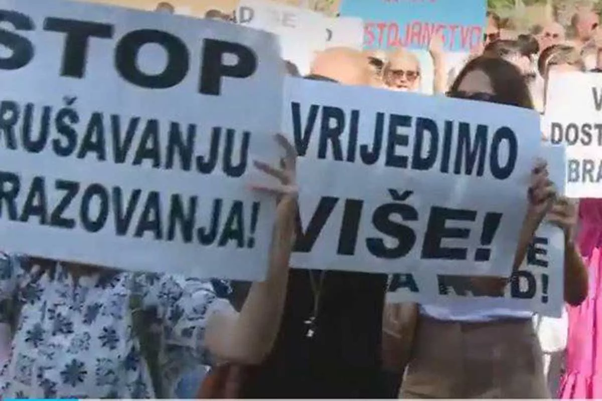 "Prvi šamar je bio kada su nam ponudili ovu drugu ponudu. To znači da ćemo samo tri mjeseca prije dobiti 5 posto, a od 1.1. 2025. nema ništa nego kao velikodušno neće uzeti tih pet posto. Očekivali smo barem tih pet posto sada i još pet posto naredne godine. A drugi šamar smo dobili kada smo izašli iz Vlade i pročitali njihovo saopštenje u kojem stoji da je od danas teret na leđima prosvjetnih radnika i da ćemo mi biti krivi za odgojno-obrazovni proces koji neće krenuti. A oni svi imaju veće plate od nas. To je loša poruka za nas, pogotovo dio gdje kažu da će doći do kolapsa budžeta HNK", kazala je.