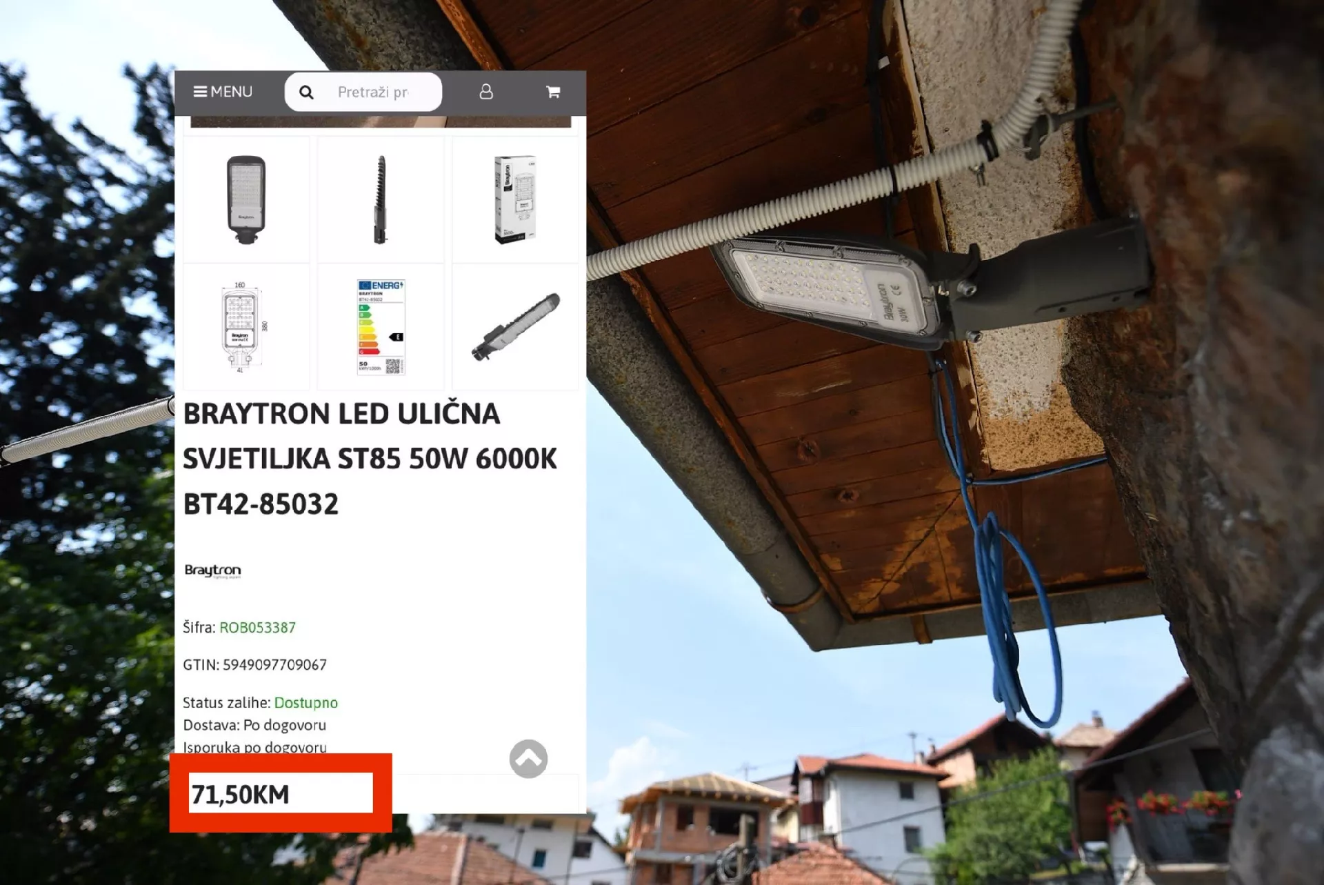Međutim, prostim istraživanjem tržišta utvrdili smo da su postavljene svjetiljke proizvođača 'Brayton', a koje u maloprodaji koštaju 71,50 KM.
