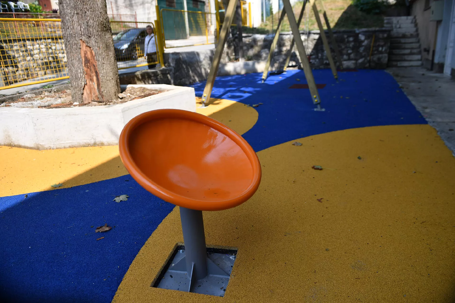 Poseban je problem to što su usred samog dječijeg parkića ostali nedovršeni šahtovi, metalni šiljci koji vire iz zemlje na nekoliko mjesta i oštre ivice skupo plaćenih, a već popucalih betonskih podzida.