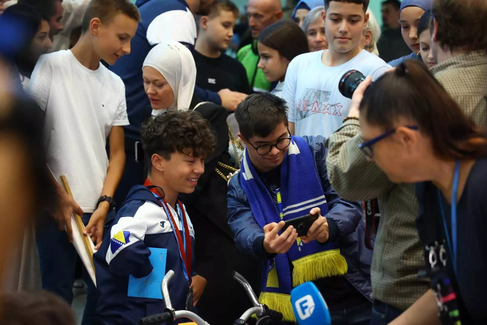 Poseban doček imao je Ismail Barlov kojeg su na aerodromu dočekali školski drugovi. Barlov je osvojio srebrenu medalju u svojoj disciplini 50 metara prsno.
