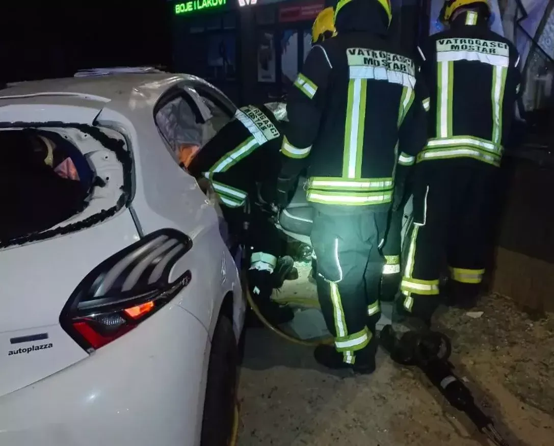 Zbog siline udara morali su intervenisati i mostarski vatrogasci kako bi izvukli tijelo preminulog iz automobila.