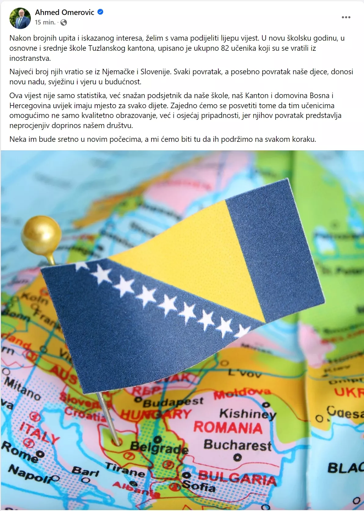 Ova vijest nije samo statistika, već snažan podsjetnik da naše škole, naš Kanton i domovina Bosna i Hercegovina uvijek imaju mjesto za svako dijete.
