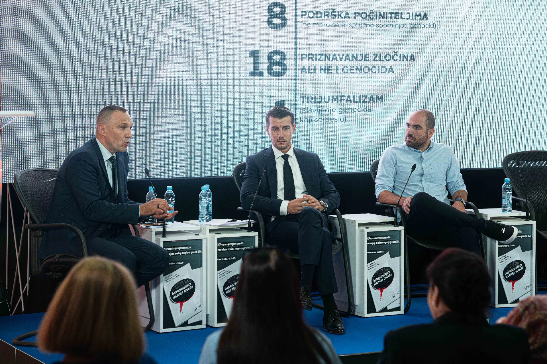 Na prvom panelu pod nazivom "Izvještaji o negiranju nenocida: Metodologija, analiza i preporuke," panelisti Edin Ikanović, vanjski saradnik Memorijalnog centra i jedan od urednika Izvještaja, dr. Almir Maljević, profesor na Fakultetu za kriminalistiku, kriminologiju i sigurnosne studije Univerziteta u Sarajevu i dr. Muamer Džananović, direktor Instituta za istraživanje zločina protiv čovječnosti i međunarodnog prava Univerziteta u Sarajevu predstavili su ključne nalaze i preporuke iz izvještaja, naglašavajući promjene u trendovima negiranja genocida i preporuke za buduće akcije.