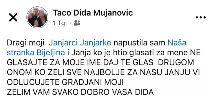 Oni su odlučili da se povuku iz trke za odbornički mandat u ime Naše stranke u Bijeljini i Janji.