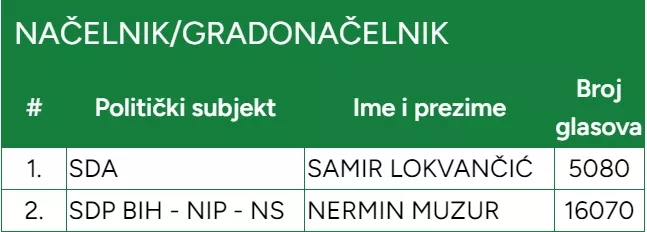 Iako se glasovi i dalje broje, preliminarni podaci danas održanih Lokalnih izbora pokazuju da je Muzur osvojio nedostižan broj glasova za svog protukandidata Samira Lokvančića iz SDA.