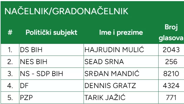 Trebalo bi to ujedno značiti i proglašenje pobjede ovog kandidata NS-SDP u utrci za načelničko mjesto za naredni četverogodišnji mandat.