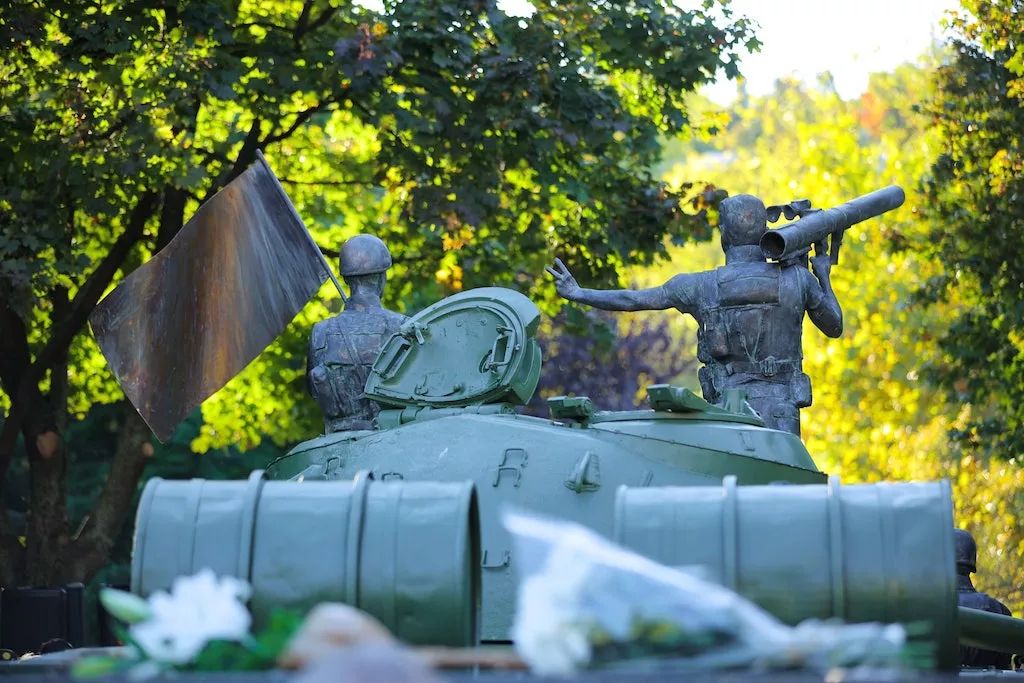 Monumentalna postavka uništenog tenka T-55, koji su specijaci uništili tokom