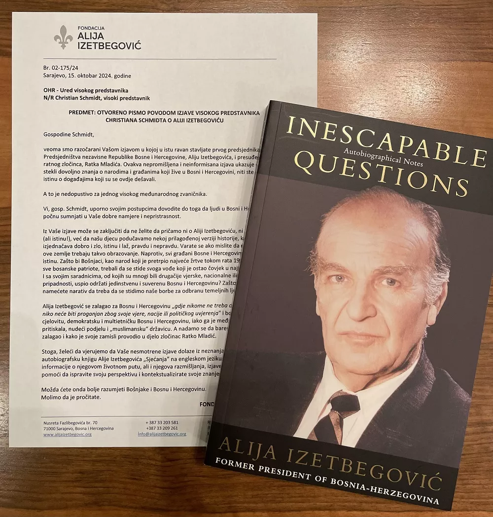 "Visokom predstavniku smo uputili pismo, ali i autobiografsku knjigu Alije Izetbegovića 'Sjećanja' na engleskom jeziku, da bi se bolje upoznao s njegovim životom, principima za koje se zalagao i njegovim postupcima", poručili su iz Fondacije.