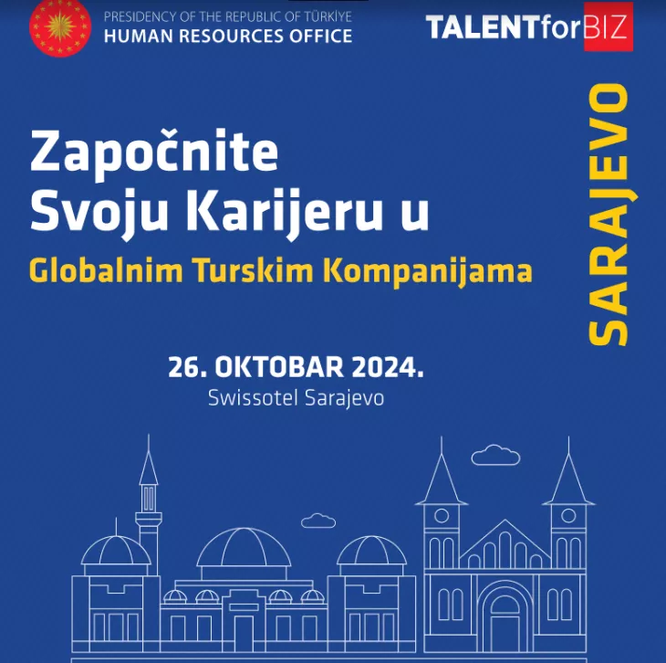 (Patria) - Globalne firme iz Turske stižu u Sarajevo 26. oktobra 2024. godine povodom događaja TalentforBIZ kako bi podijelile karijerne mogućnosti sa mladima.