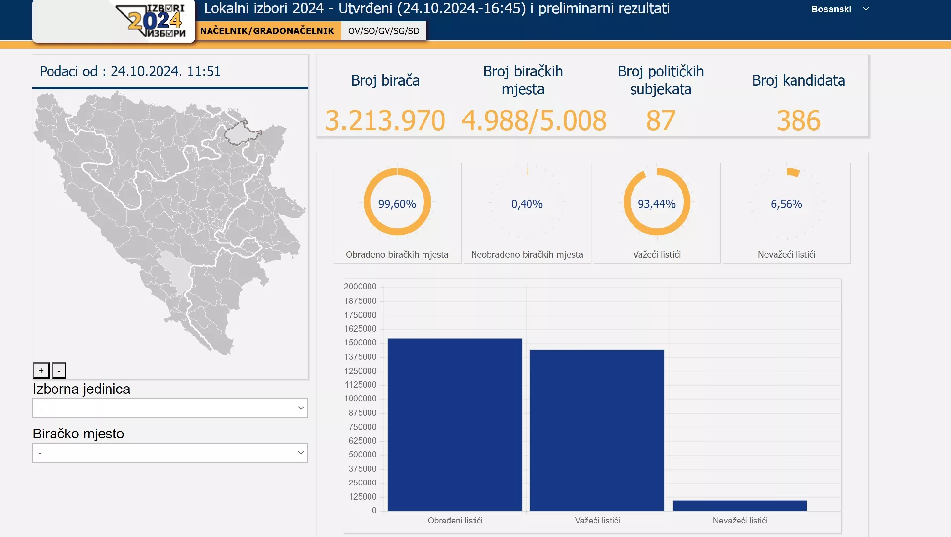 (Patria) - Centralna izborna komisija (CIK) BiH donijela je danas Odluku o utvrđivanju i objavlјivanju rezultata Lokalnih izbora 2024. godine.
