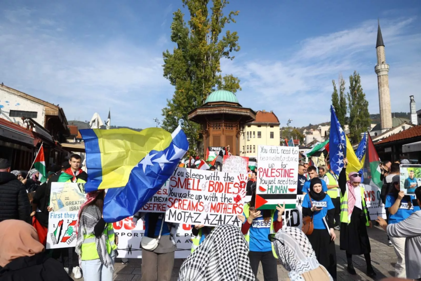 Palestinska zajednica u Sarajevu organizovala je ovaj skup kako bi skrenula pažnju na tešku situaciju u kojoj se palestinski narod nalazi zbog rata u Gazi. Jedan od prvih skupova u Sarajevu je održan prije godinu dana. Sukob je počeo 7. oktobra, a do danas su ubijene deseci hiljada Palestinaca, najviše u Gazi. Nekoliko izbjeglica i bh. državljana napustilo je Gazu i došlo u Bosnu i Hercegovinu.