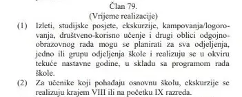 Rezultat je to stupanja na snagu Pravilnika o realizaciji škole u prirodi, izleta, studijskih posjeta, ekskurzija, kampovanja / logorovanja, društveno-korisnog učenja i drugih oblika odgojno-obrazovanog rada u osnovoj i srednjoj školi, a kojim je propisano da učenici odlaze na ekskurziju početkom devetog razreda umjesto u drugom polugodištu, piše Faktor.