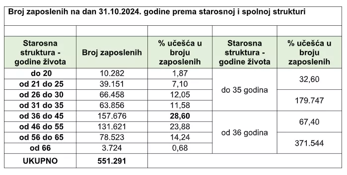 (Patria) - Broj zaposlenih prema prebivalištu zaposlenika na dan 31.10.2024. godine je u FBiH 551.291. U odnosu na mjesec septembar broj zaposlenih se povećao za 490.