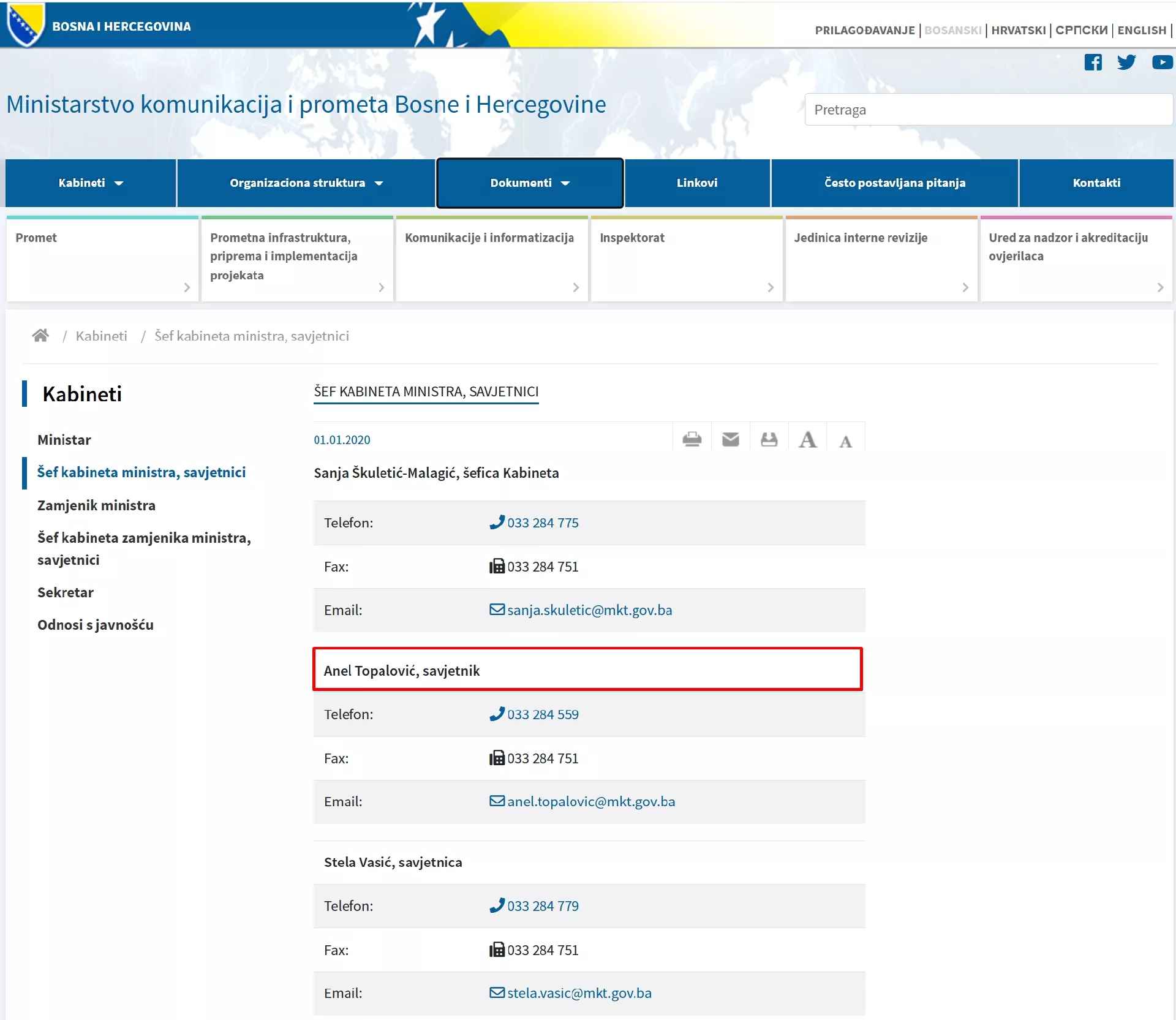 Topalović je inače kadar Naše stranke i savjetnik ministra komunikacija i prometa BiH Edina Forte.