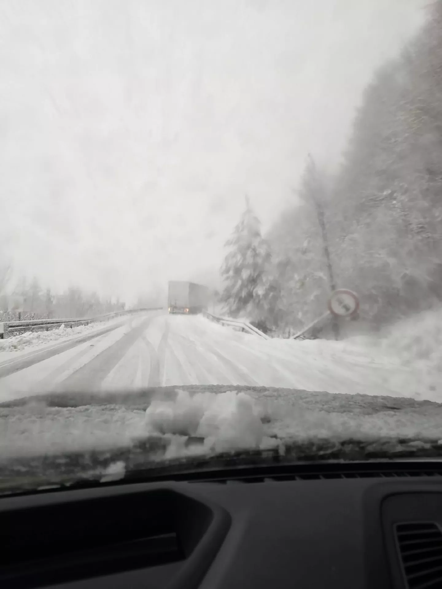 (Patria) - Zbog loših vremenskih uvjeta i intenzivnog snijega zabranjen je saobraćaj za teretna vozila preko 3,5 t na magistralnom putu Olovo-Kladanj (planinski prevoj Karaula).