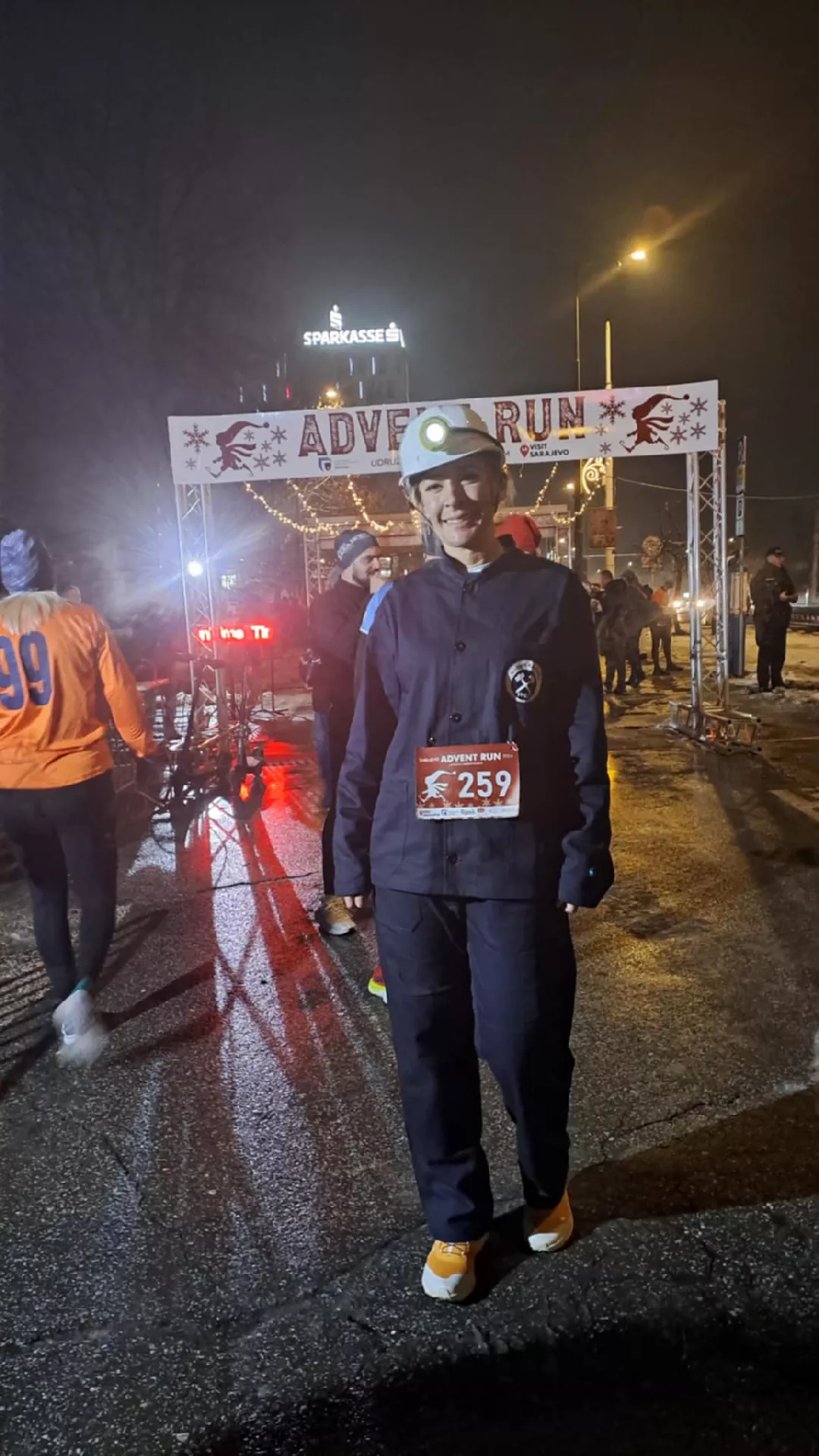 Ona je na večerašnju utrku Advent run 5K koja se održavala u Sarajevu, došla obučena u tamnoplavo rudarsko odijelo i sa rudarskom kacigom. Ona je svim svojim kolegama komoratima čestitala praznik i istakla da uslovi jesu teški, ali da uspijevaju svojim trudom.