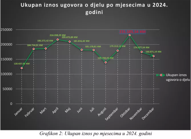 Analiza je pokazala da je iznos utrošenih sredstava za ugovore o djelu po mjesecima najveći u oktobru 2024. godine. To je bio i izborni mjesec kada su održani lokalni izbori u BiH.