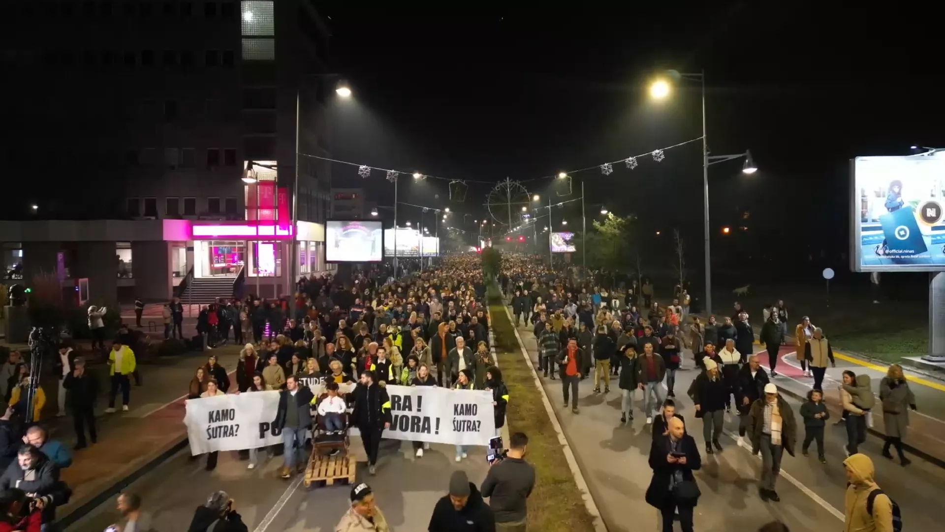 (Patria) - Više hiljada ljudi, u organizaciji studentske grupe "Kamo sutra?", okupilo se ponovo sinoć pred zgradom Ministarstva unutrašnjih poslova (MUP) u Podgorici, odakle su se zaputili u protestnu šetnju ka Skupštini Crne Gore.