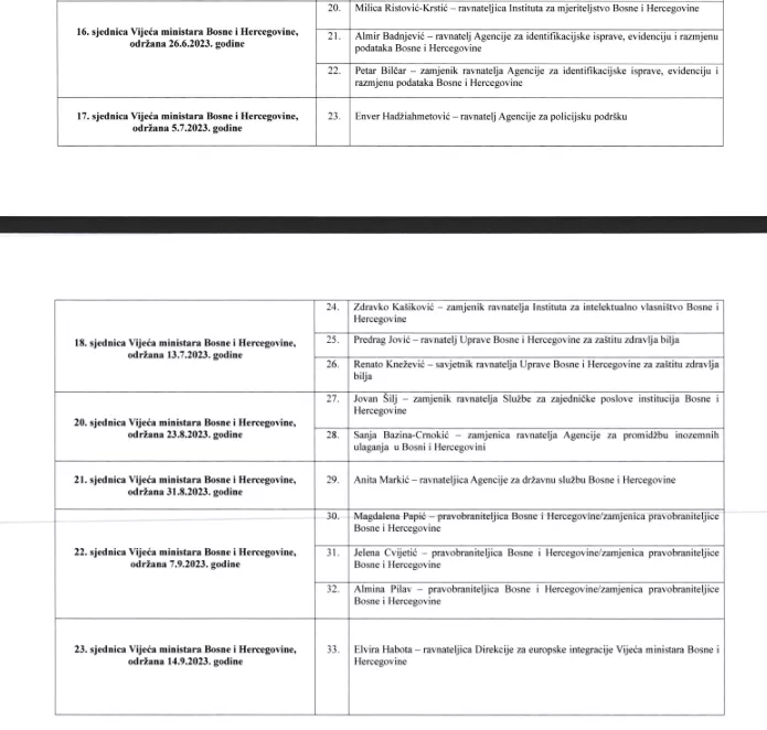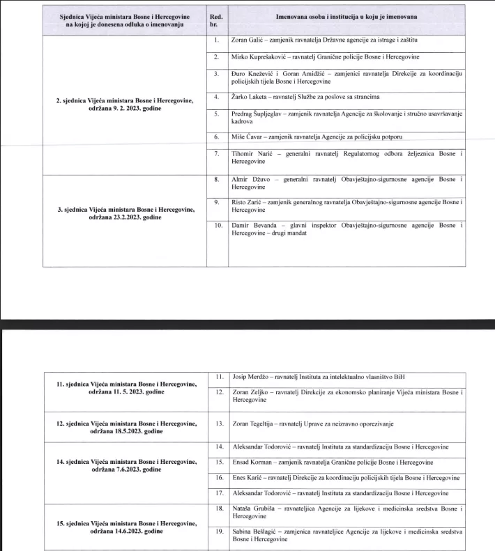Pregled svih imenovanih kadrova koje imenuje Vijeće ministara BiH od februara 2023. do avgusta 2024. godine