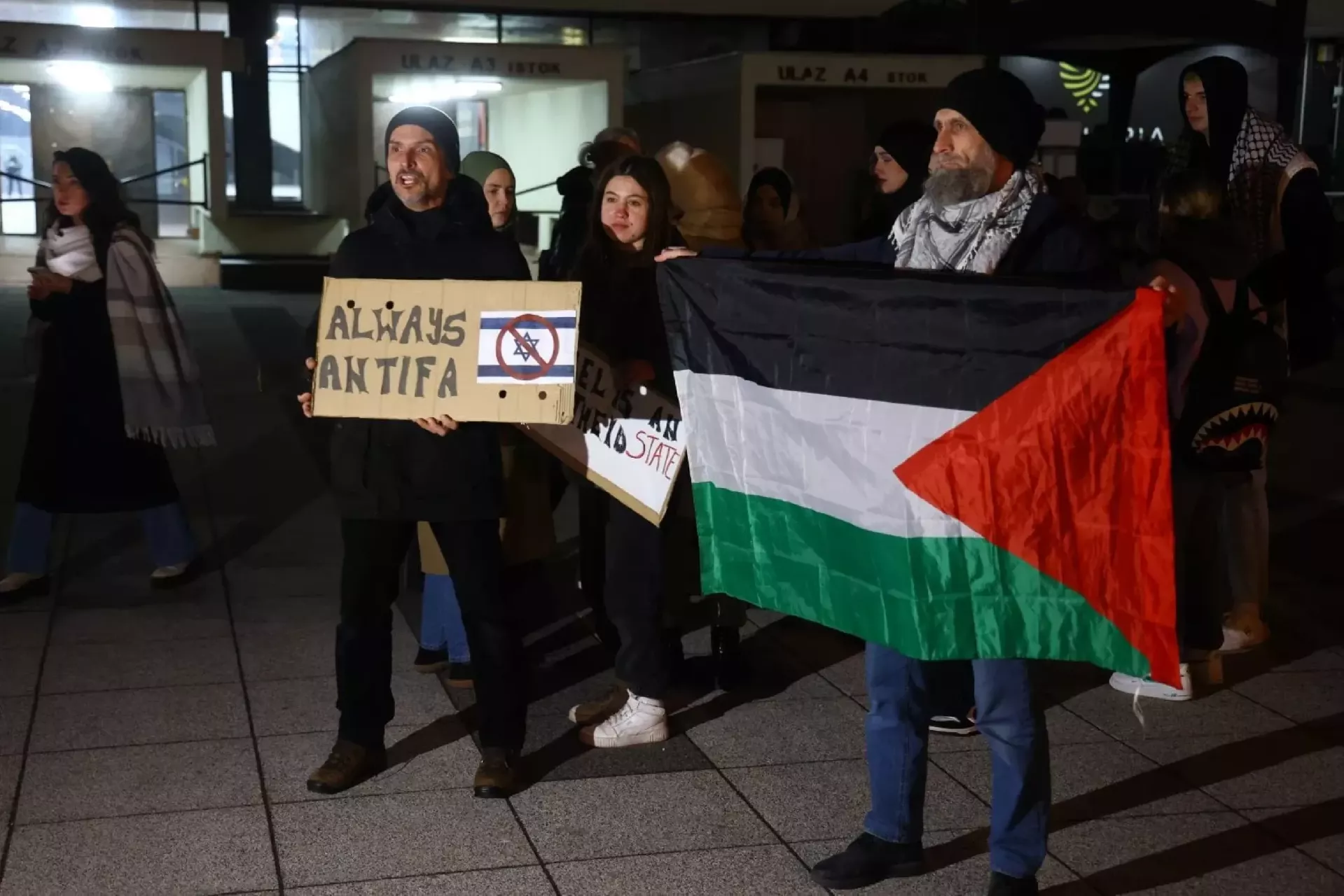 Uoči meča ispred dvorane održani su protesti, u organizaciji neformalne grupe građana Bosna for Palestine, iz koje su pozvali na mirno okupljanje i izrazili nezadovoljstvo što selekcija Izraela igra u BiH.